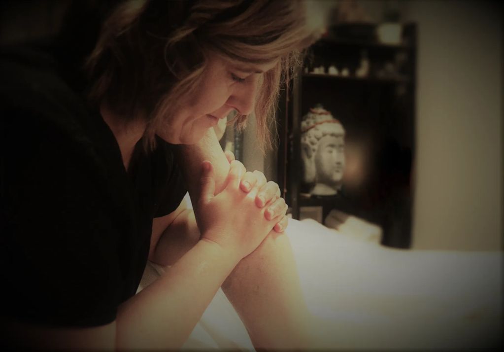 Me again! (flushing out a client's gastroc...aka achy calf muscle)